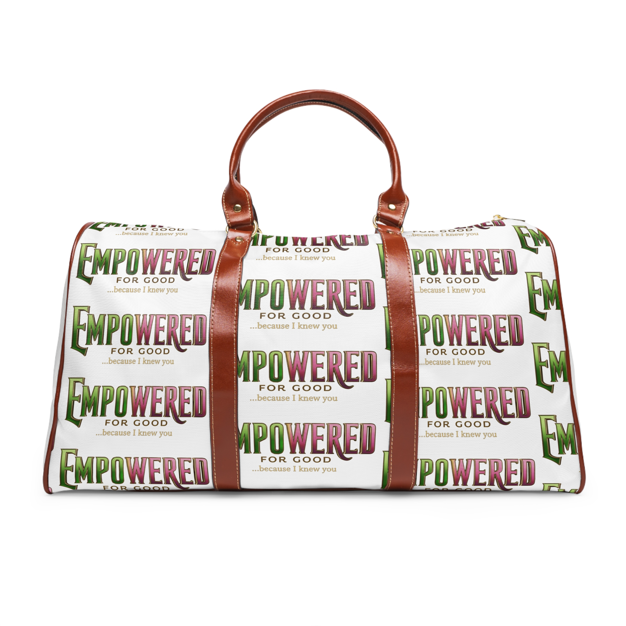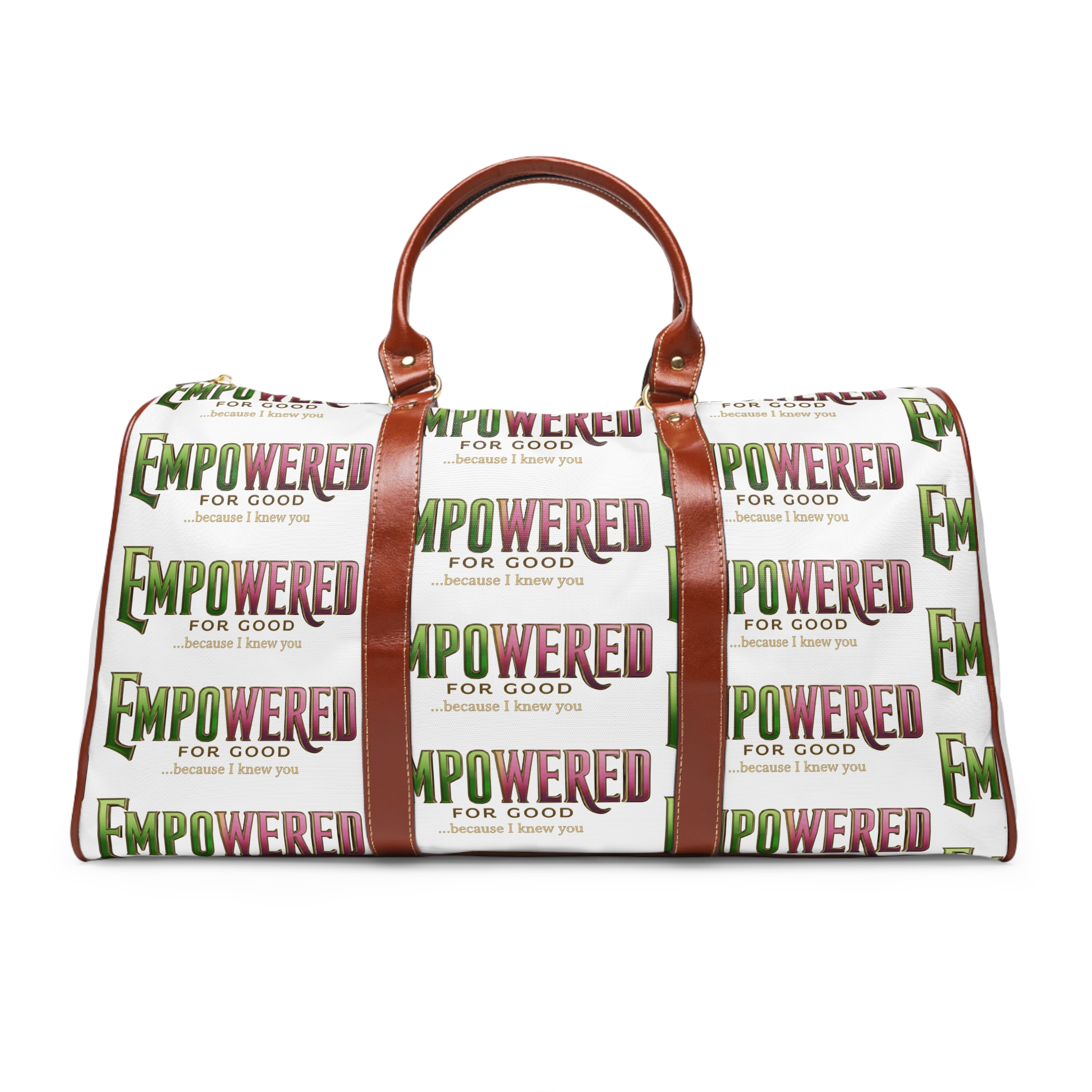 Bright, tough, and ready to roll — this travel bag carries more than things; it brings energy. The bold all-over print pops against warm tan handles and gold hardware, so your bag stands out at the gate and looks lived-in by the time you reach your destination. Lightweight high-grade nylon keeps the load easy while the waterproof finish keeps clothes and tech dry through unexpected rain or spilled coffee. Inside, a single open pocket keeps small essentials within reach; the roomy 20″ × 12″ × 9″ interior swallows outfits, shoes, and toiletries for weekend escapes or overnight work trips. Carry by the microfiber PU leather top handles for short hauls or sling the adjustable shoulder strap for hands-free travel.